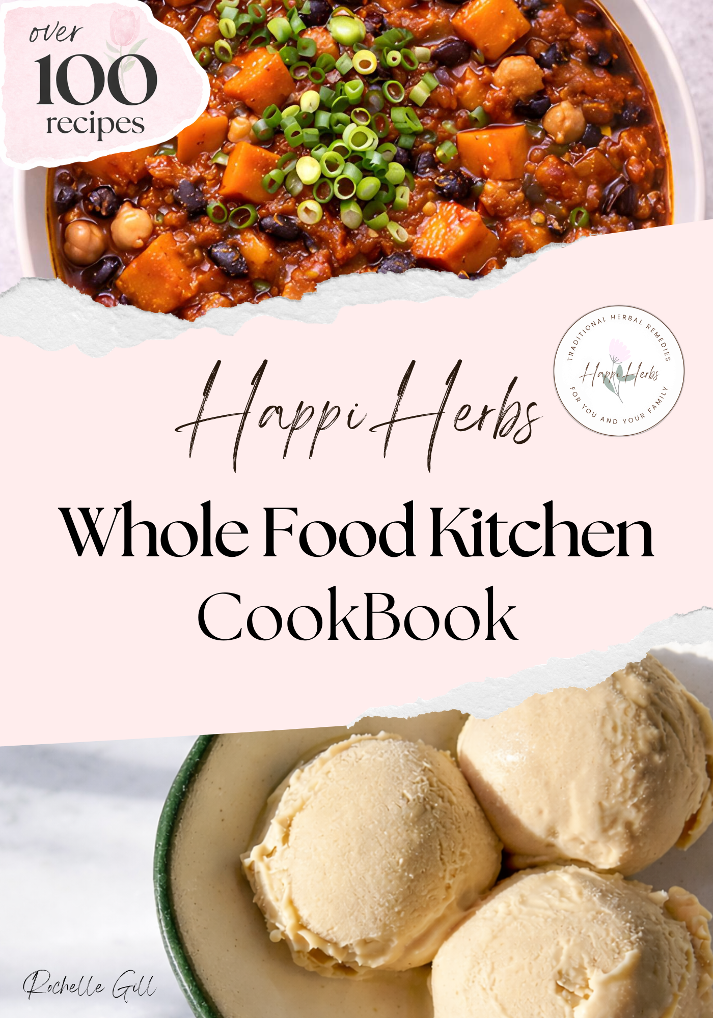 Preview the HappiHerbs Whole Food Kitchen Cookbook A glimpse inside over 100 nourishing, real-food recipes made with intention.